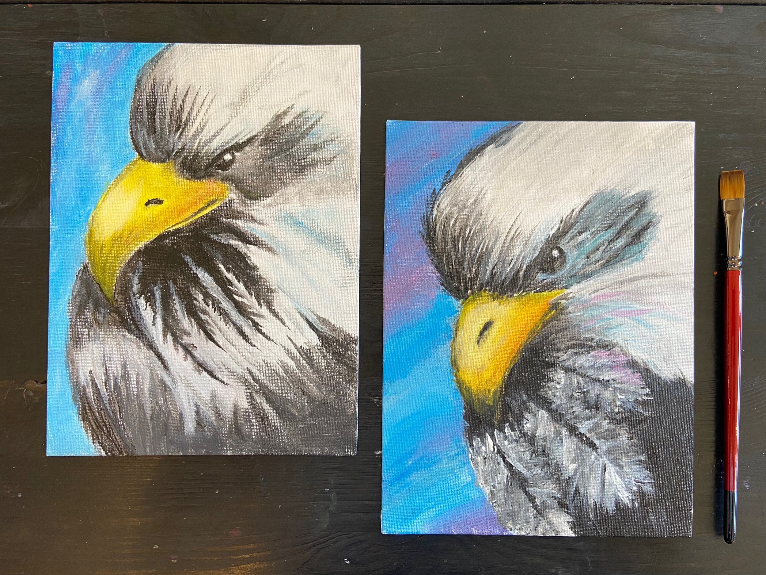 “Vi har lært mange, nye forskjellige måter å tegne og male på. Favoritt tingen som vi lagde her var å male en ørn ute i solen.”
